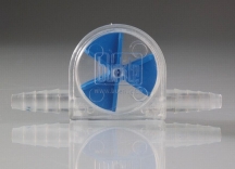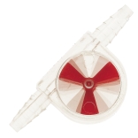 Indicatori di flusso, LiquiMobilLiquiMobil è un indicatore di flusso in SAN, permette di regolare la portata dell'acqua di raffreddamento, poichè fornisce un'indicazione visiva precisa della velocità del flusso di liquidi o gas trasportati attraverso i raccordi dei tubi flessibi. L'indicatore di flusso con girante funziona in entrambe le direzioni e in qualsiasi posizione. L'elica in PP inizia a ruotare ad una portata di circa 150 ml/min. Disponibile in diversi colori. Temperatura max +30°C. | |||||||||||||||||||||||||