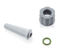 Pompe, per vuoto, ad acqua in plasticaPompa aspirante per vuoto a getto d'acqua in plastica, con camera interna ispezionabile. La pressione massima di 16 mbar (acqua a 20°C), viene raggiunta con diverse pressioni d'acqua da 3 a 6 bar. La capacità di aspirazione è di ca. 400 l/ora di aria a pressione atmosferica con una potenza di pressione dell'acqua di 3,5 bar a 12°C. Dotata di valvola di ritegno sul raccordo di aspirazione. Fornita completa di attacchi per rubinetti con filettatura da 3/4, riduttore da 1/2 e attacco portagomma per tubi con diametro esterno di 10-12 mm. Il raccordo per aspirazione, ha un attacco GL14 e si adatta a tubi con diametro esterno di 6-9 mm. Corpo in polipropilene, valvola di ritegno in Viton e anello di guarnizione in PTFE. | |||||||||||||||||||||||||||||||||||||||||||||||||||