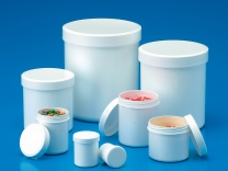 Vasetti cilindrici in PP di colore bianco con tappo a vite.